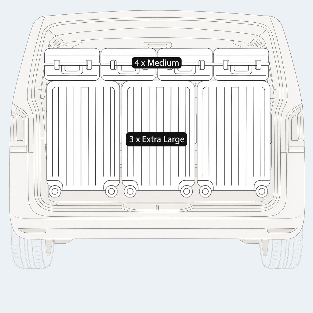 The V-Class can accommodate 3 x Extra Large and 4 x Medium suitcases.